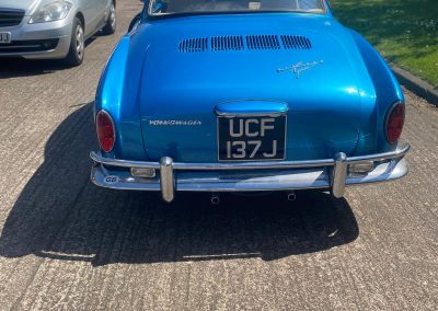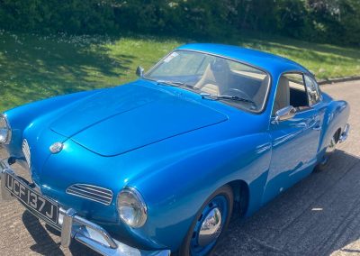 Manufactured with a beautifully hand crafted body on a standard Type 3 chassis and running gear with the 1964 model year being the first year when the new more powerful 54hp “S” engine was fitted. It has dual carburettors, domed-topped pistons with a higher compression ratio and was capable of 100mph. The Type 34 Karmann Ghia was marketed and aimed at the luxury end of the market.